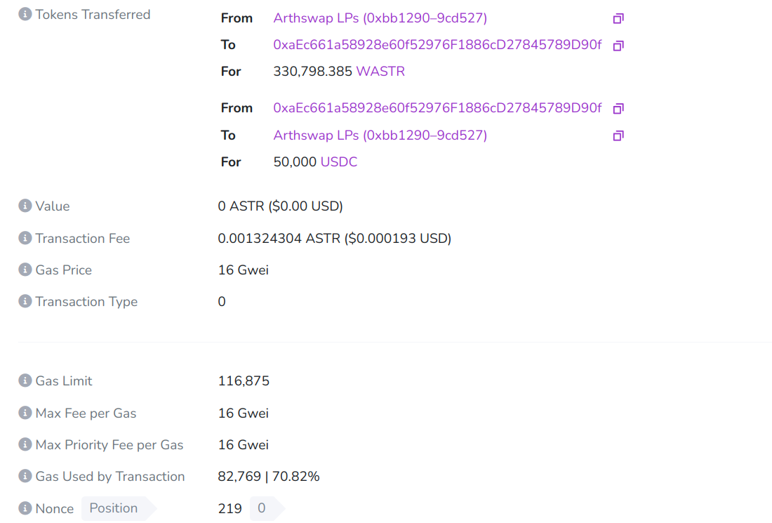 また、誰も注目していないので、ステーブラナイコインになっており、1USDC=1.05USDTの世界でした。もちろん、LPがないのでプラインがものすごく大きく、10万円もSwapしたら1%くらいステーブルペアが変動する状態でした。